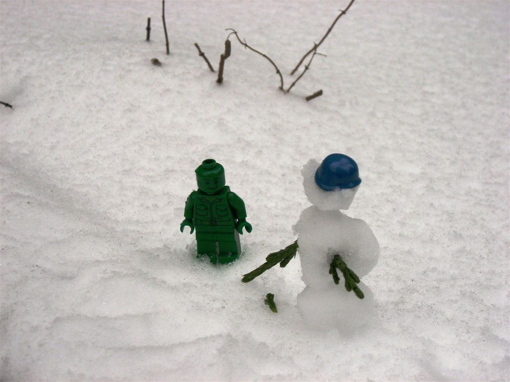By now you probably know that the little Peacekeeper is not only working hard but he also has some good humor. Since it is winter and he is on break he built a little snowman and put his helmet on the snowman. Only for a short while of course – it is cold and he needs to keep his head warm after all.