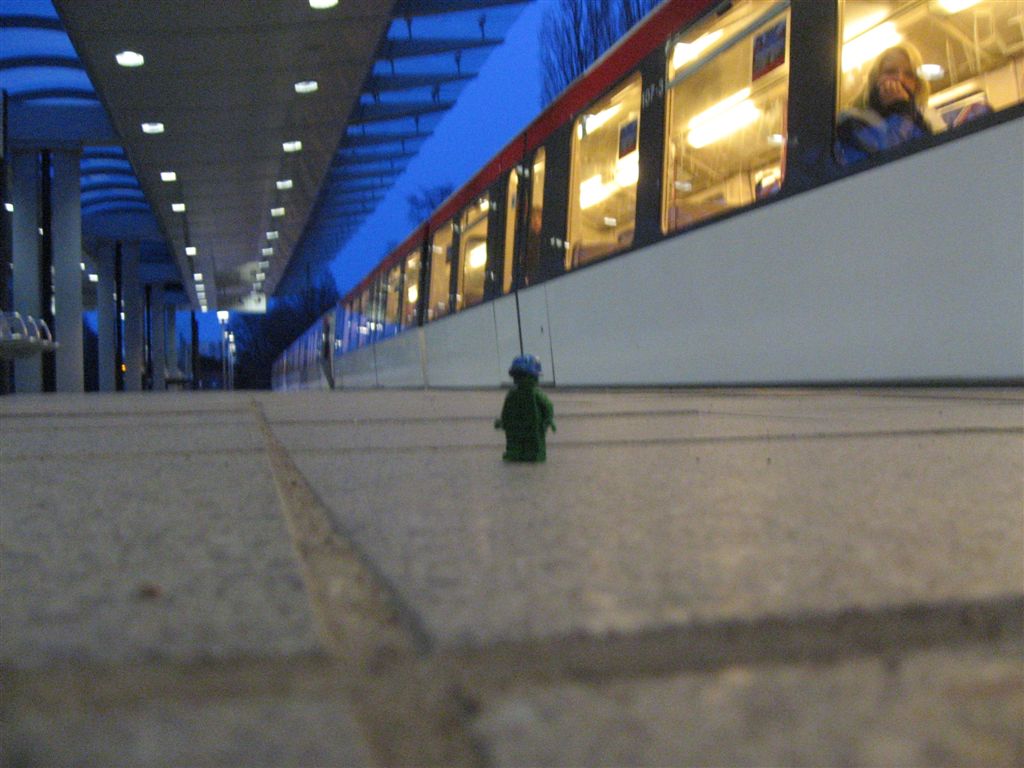 On the road Posted on April 23, 2010 by Rottmair Sebastian · Leave a comment On the way to his next mission the Little Peacekeeper takes a train. It’s getting dark a bit and he seems to be alone in the station.