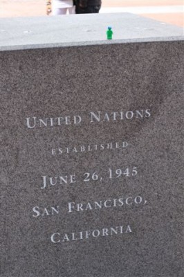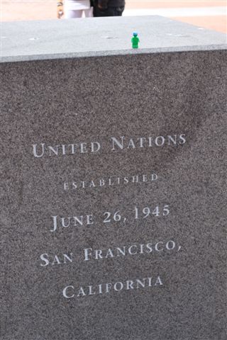 At the birthplace of the UN Posted on September 17, 2010 by Rottmair Sebastian · Leave a comment Some of you knew where he is. And here it is for all the others: The Little Peacekeeper is in San Francisco, the birth place of the United Nations.