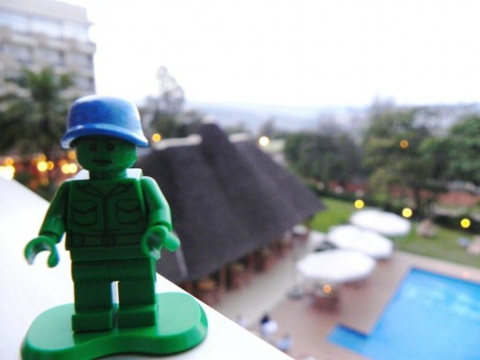 The Little Peacekeeper in Rwanda Posted on February 17, 2011 by Rottmair Sebastian · Leave a comment The Little Peacekeeper is now in beautiful Rwanda. Here you see him resting in the evening at the Hôtel des Mille Collines (also known as Hotel Rwanda).