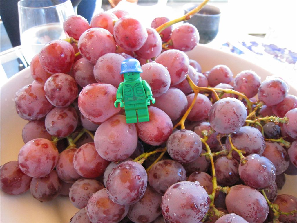 Just before leaving and in order to be fit for his journey, the Little Peacekeeper is eating some wonderful Chilean grapes: